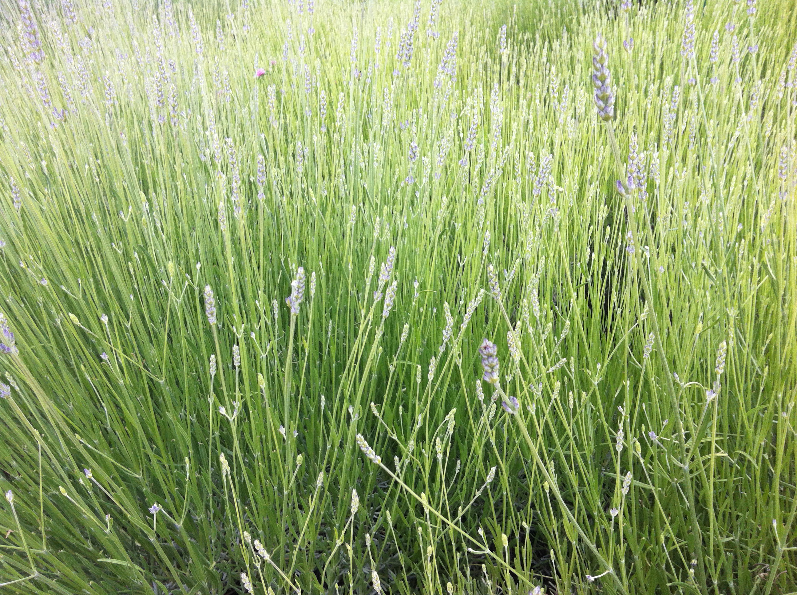 Jardín de lavanda en primer término. Un poco más allá, tilos. Una reja alta que da a un campo de golf y detrás campos de fútbol y una pista para correr.