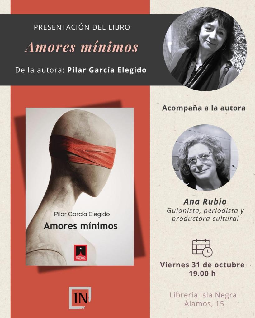 Este viernes 31 de octubre regreso a Málaga a presentar Amores mínimos en la librería Isla Negra, a las 19.30, y ya podéis entender por qué este encuentro me alegra tanto. Acompañada por Ana Rubio, guionista y periodista, pero sobre todo amiga, será estupendo recorrer los territorios del libro y de la creación, desde la escritura, el cine o la fotografía. Si estáis por allí, os esperamos.